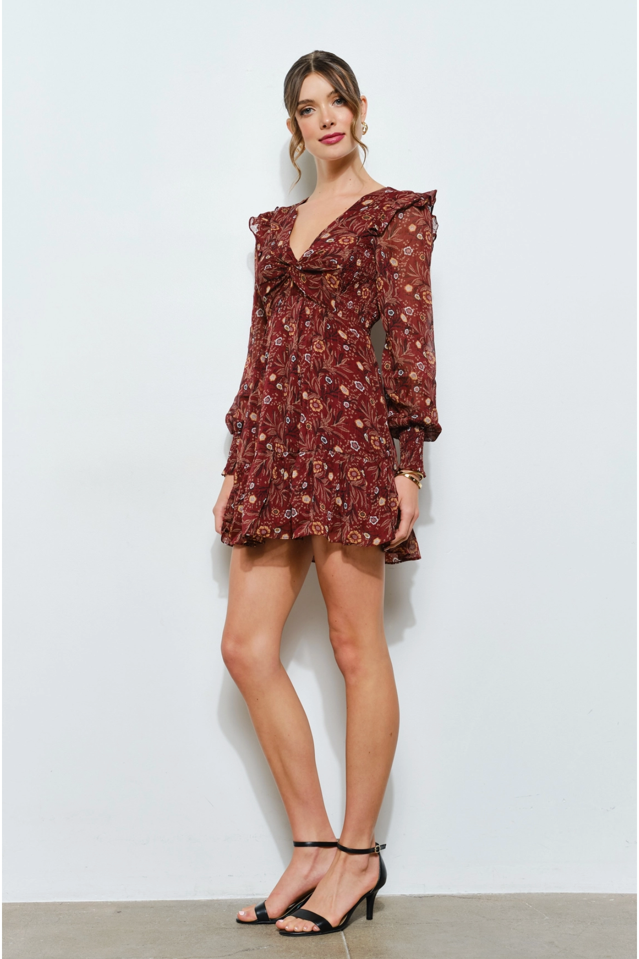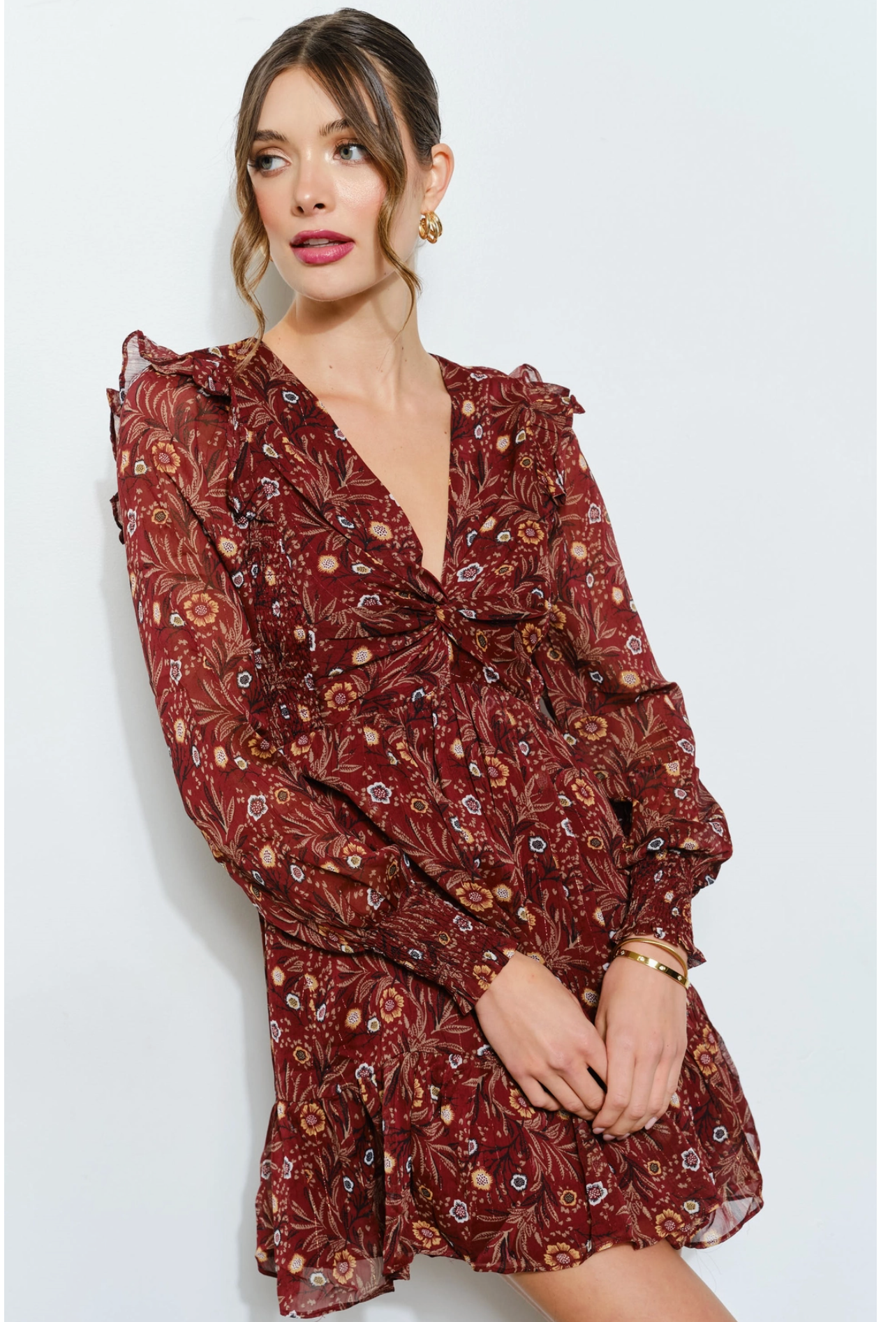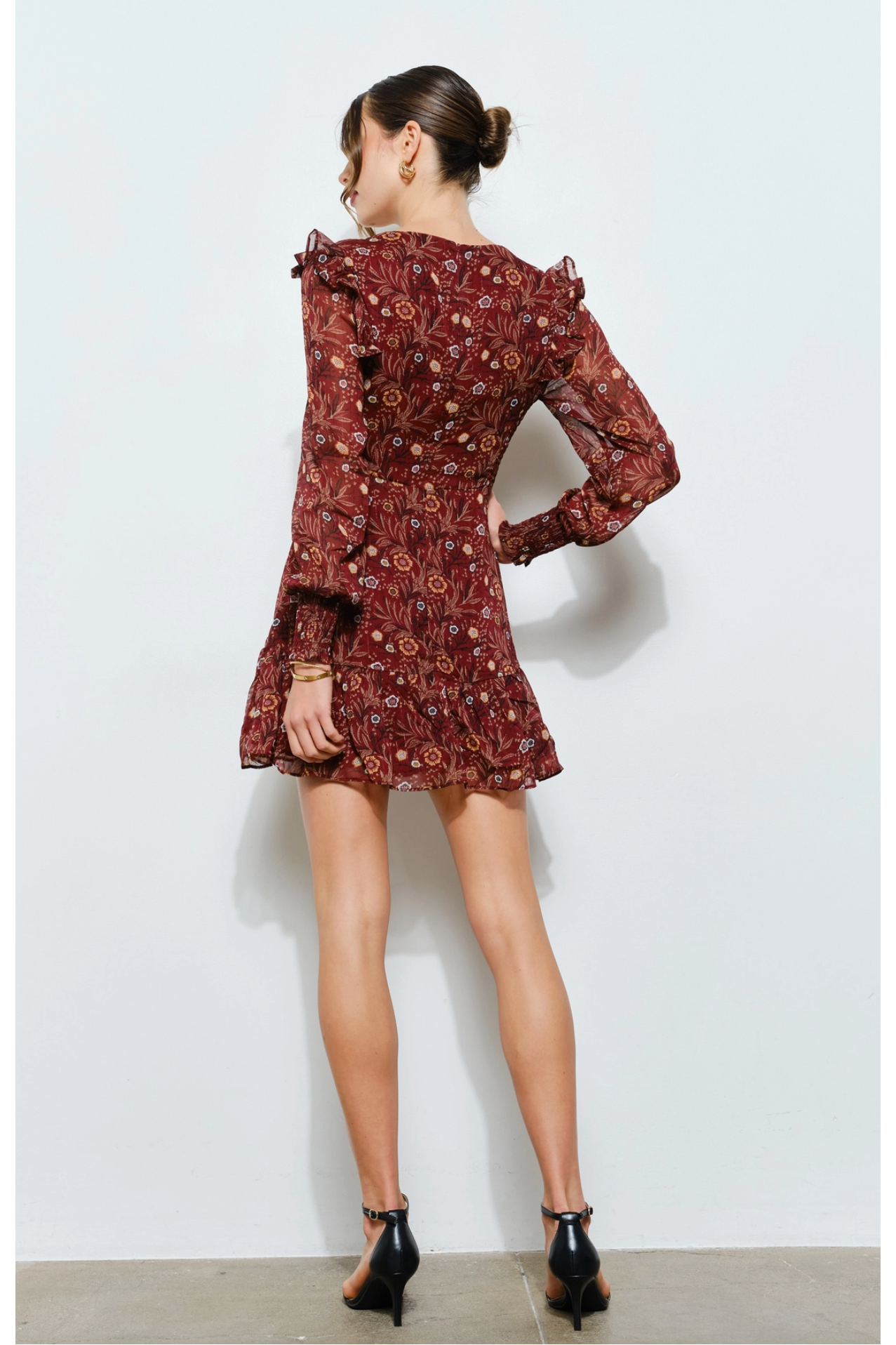 Floral Merlot Chiffon Mini Dress
