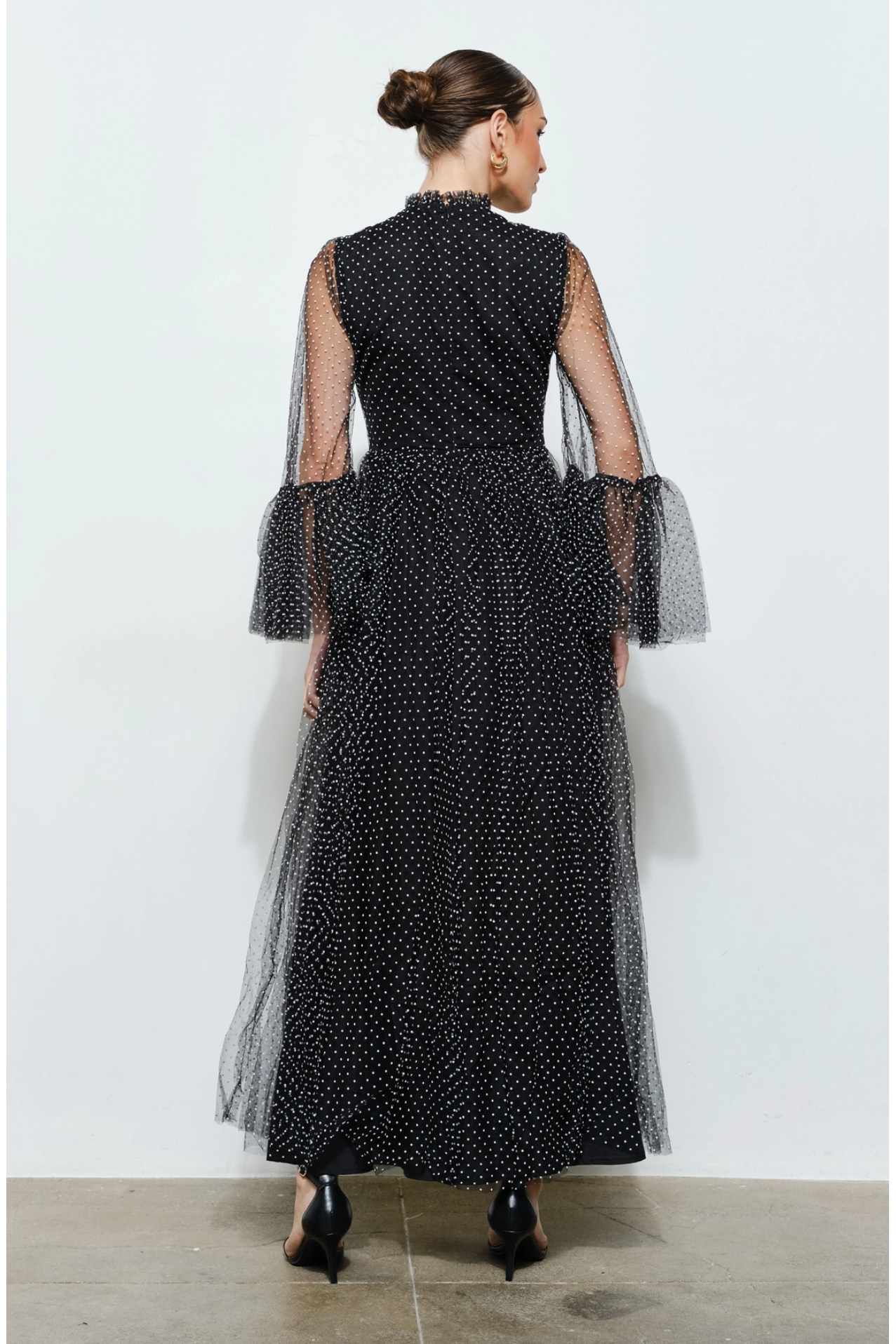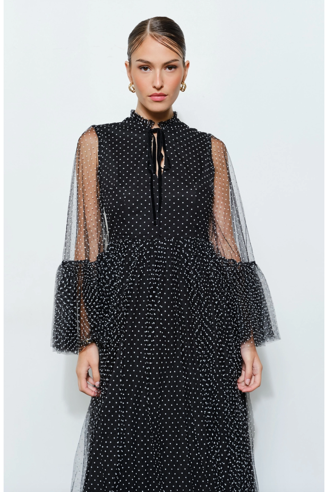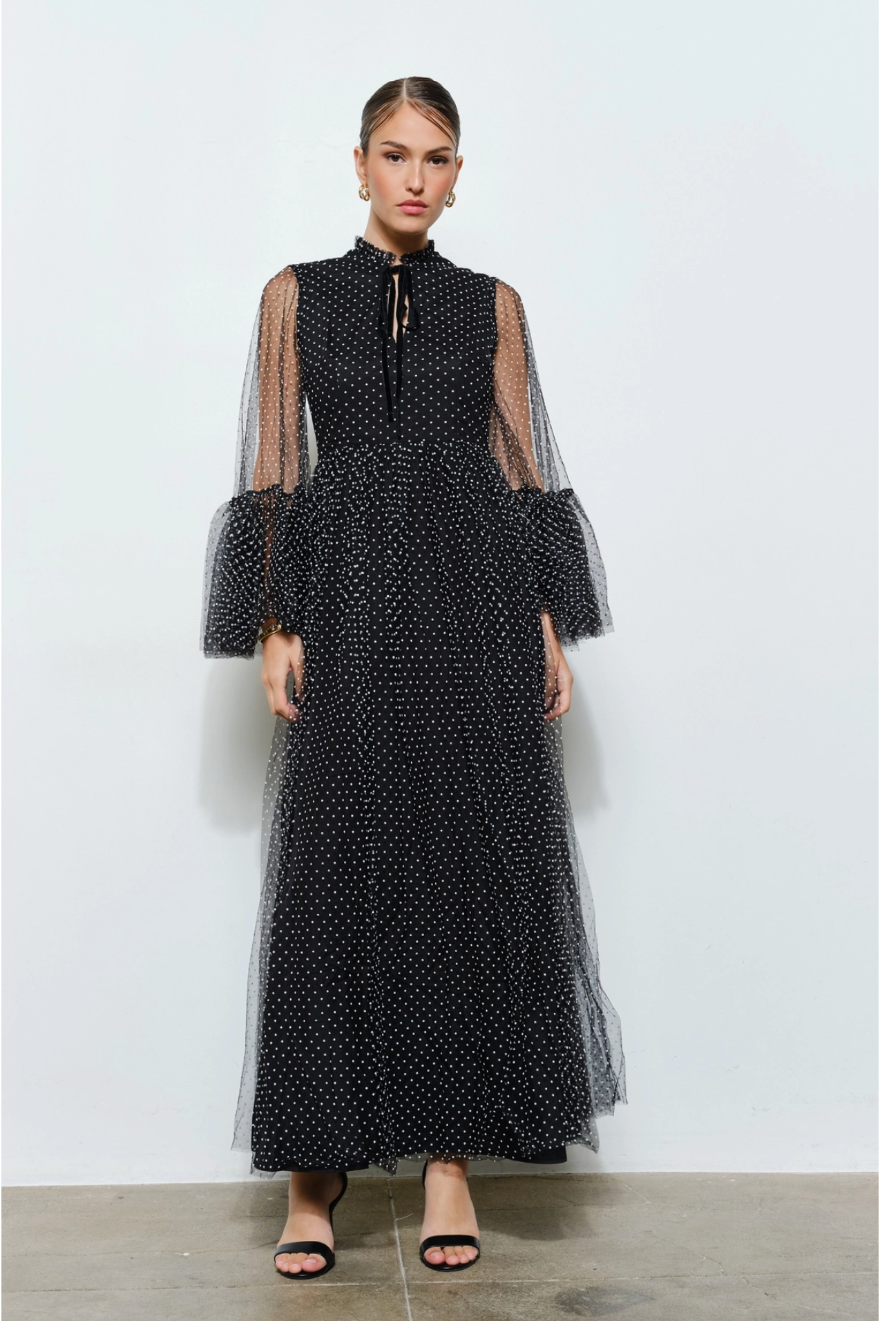 Stunning Polka Dot Mesh Layered Sleeve Maxi Dress