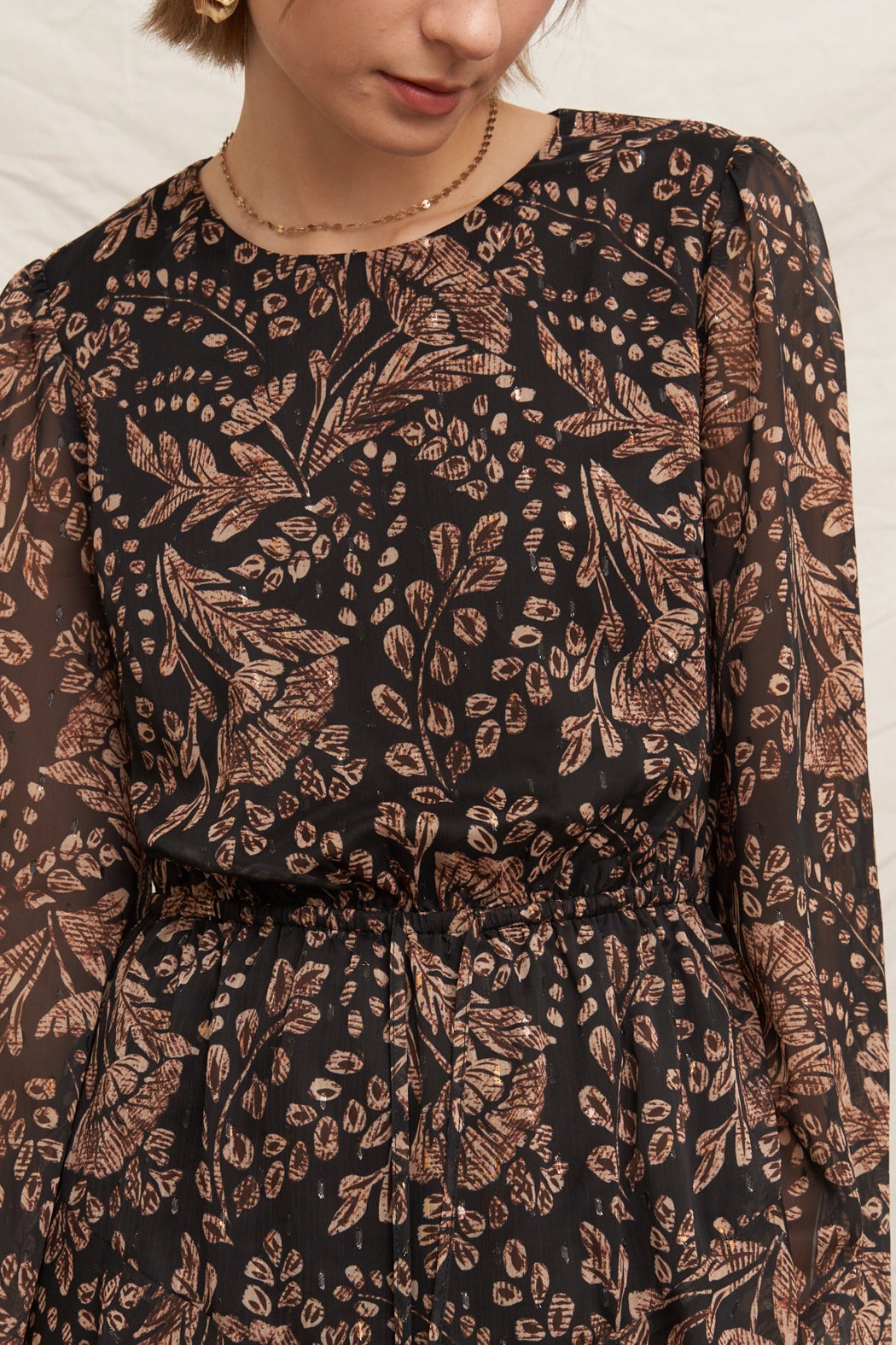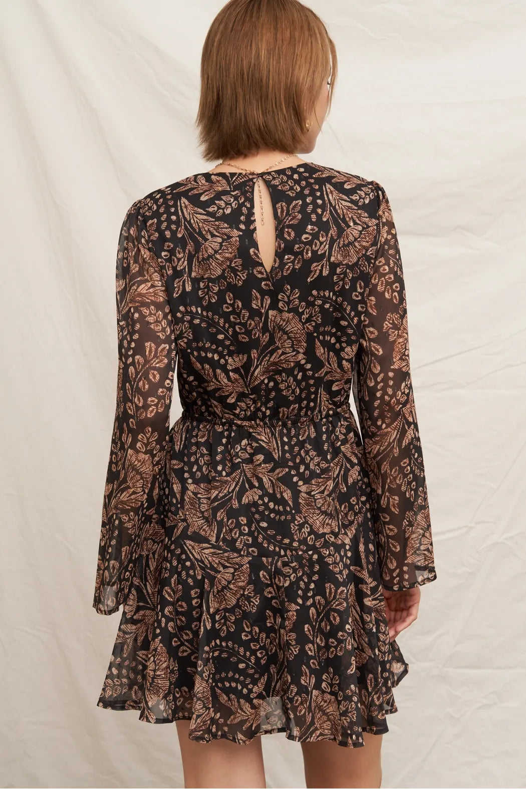 Paisley Print Bell Sleeve Mini Dress with Lurex