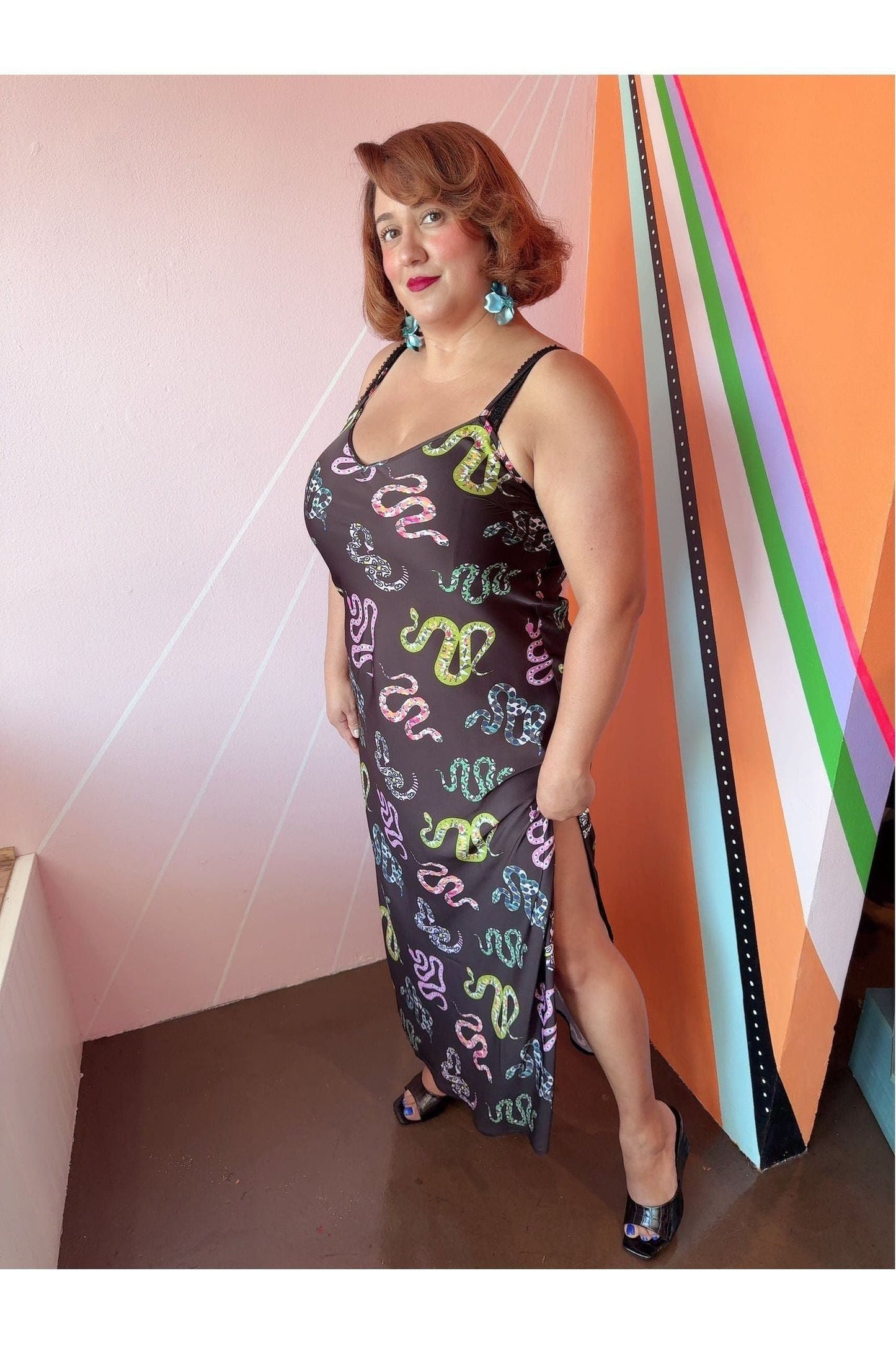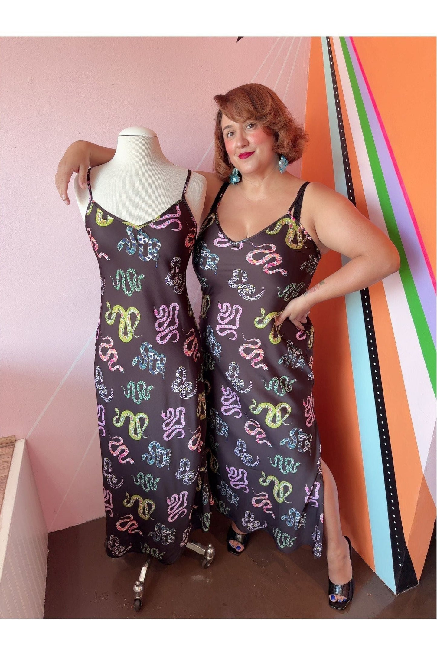 Adjustable Side Zip Snake Slip Dress