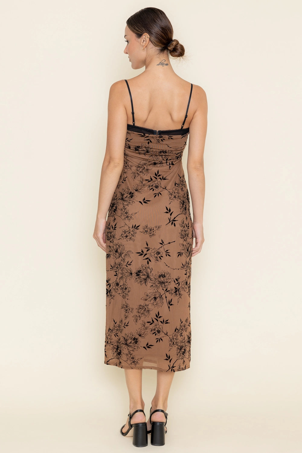 Lace Burn Out Velvet Floral Mesh Midi Bra Dress