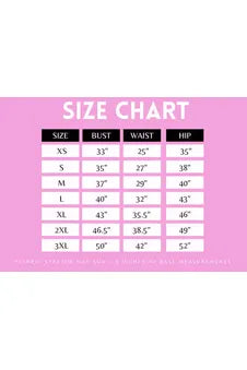 *Use the below body size chart to find your recommended size, please keep in mind there is not much stretch in the bust or the waist, the measurements shown are the jumpsuit un-stretched. If in between sizes, size up.