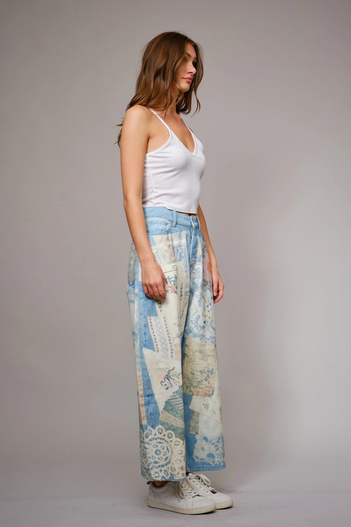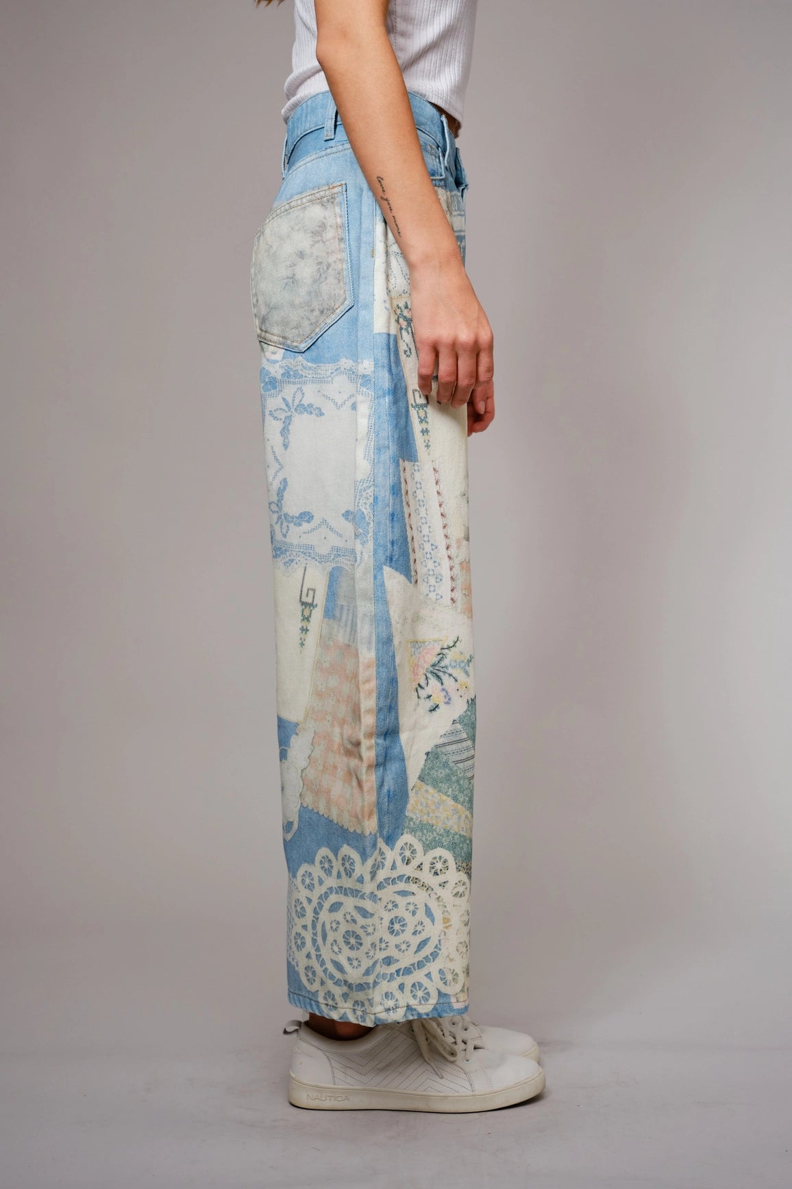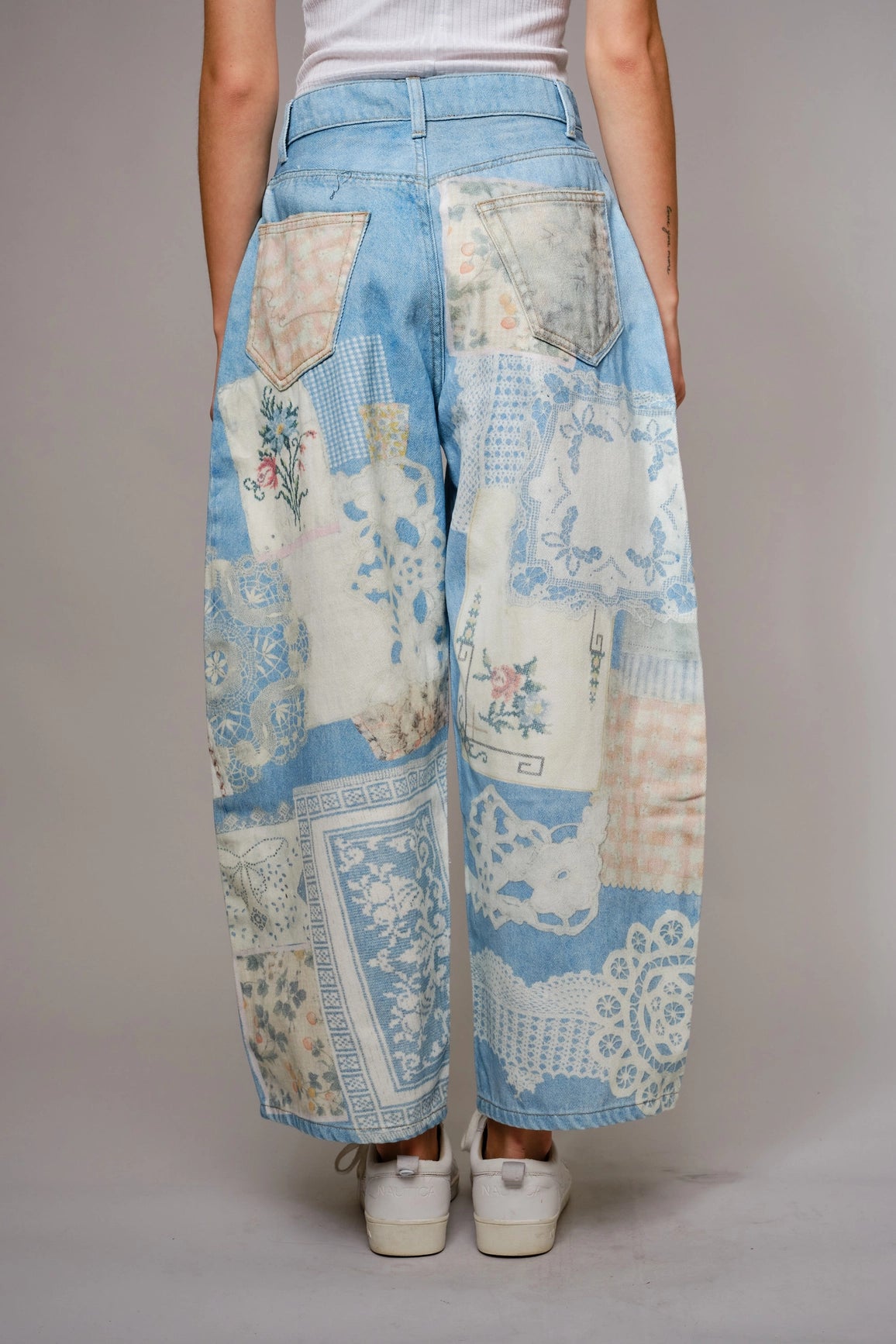 *All over vintage inspired patch print with florals, lace, and needlework motifs