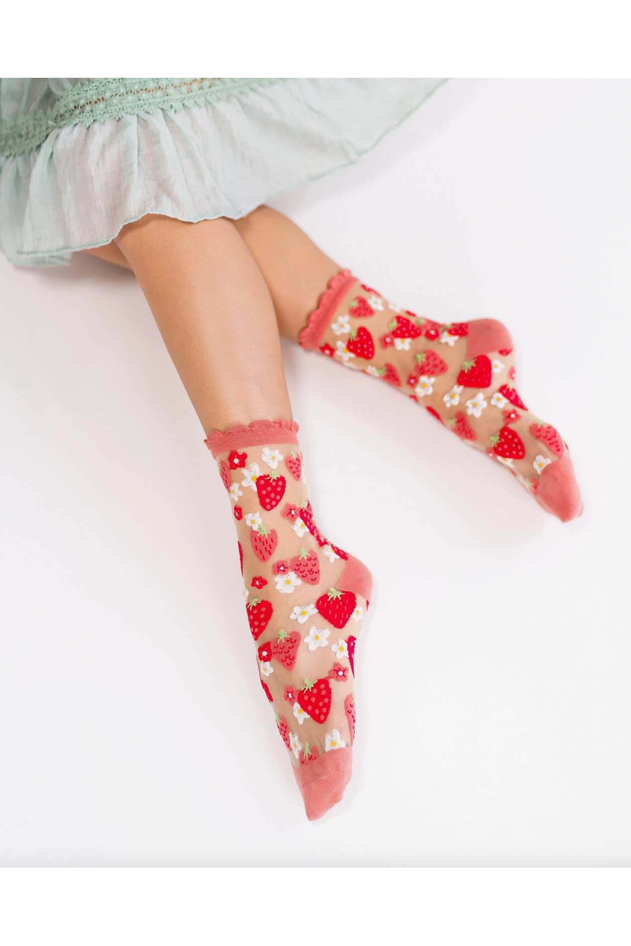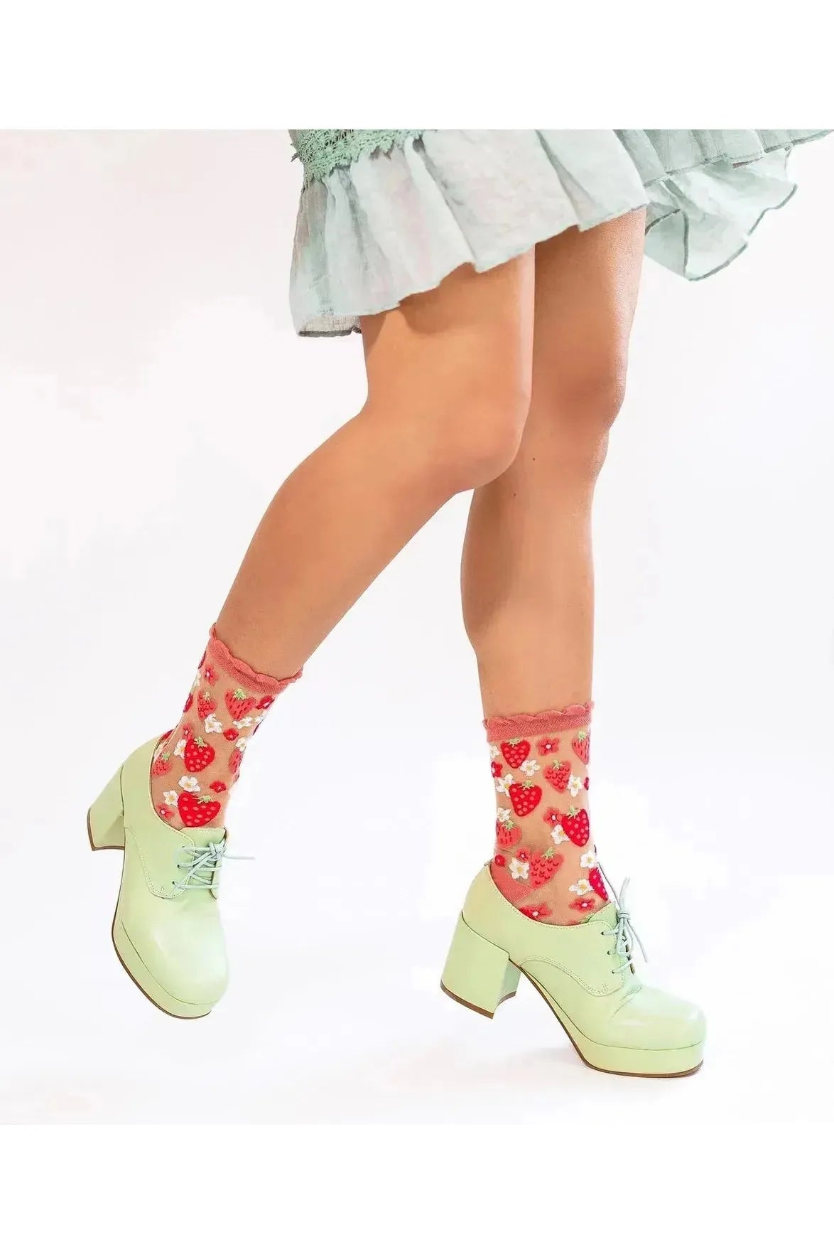 Strawberry Daisy Ruffle Sheer Crew Fashion Socks