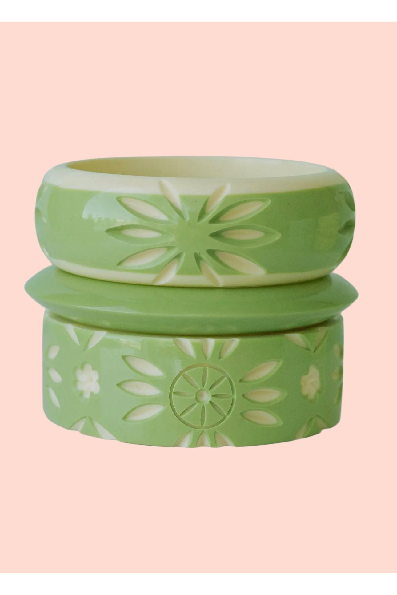 Beautiful muted colors, mid-century styling and vintage-inspired lucite bangles. It's everything we LOVE about Palm Springs and when paired all together in a set of bangles they are sure to go with all your vintage and modern outfits!