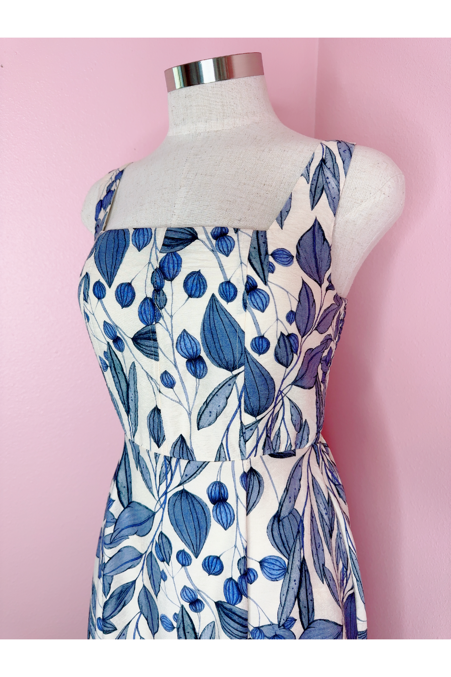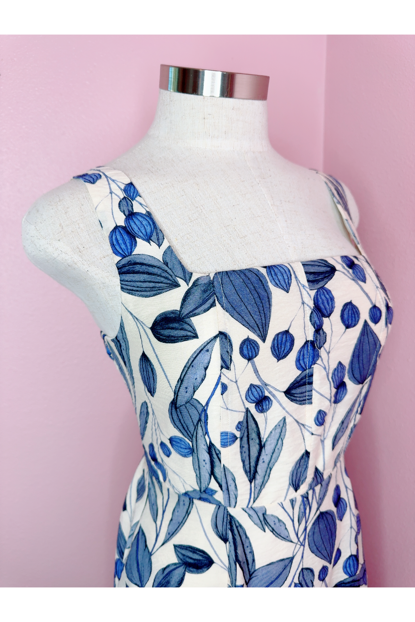 *Vintage inspired navy and off-white leaf fabric print