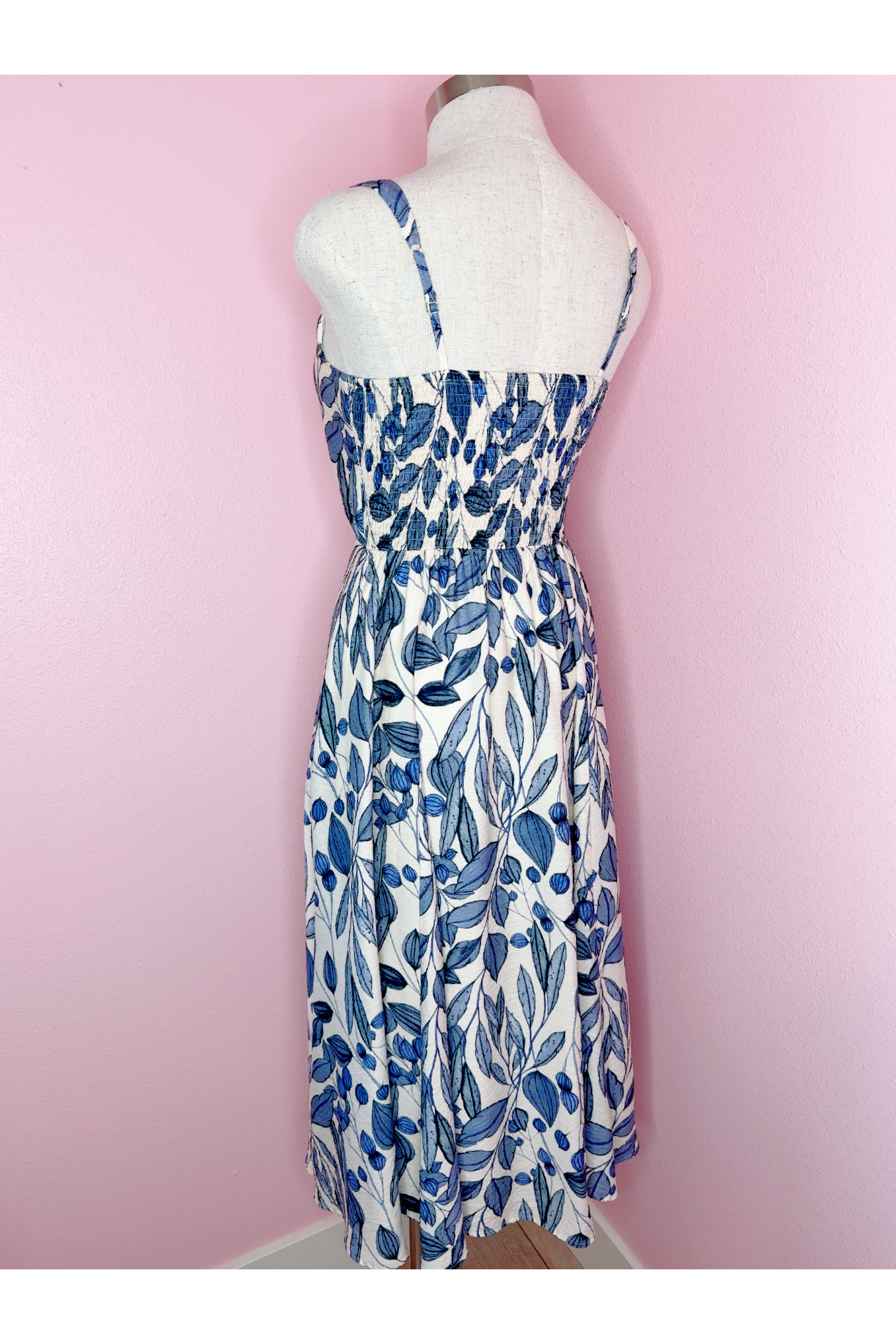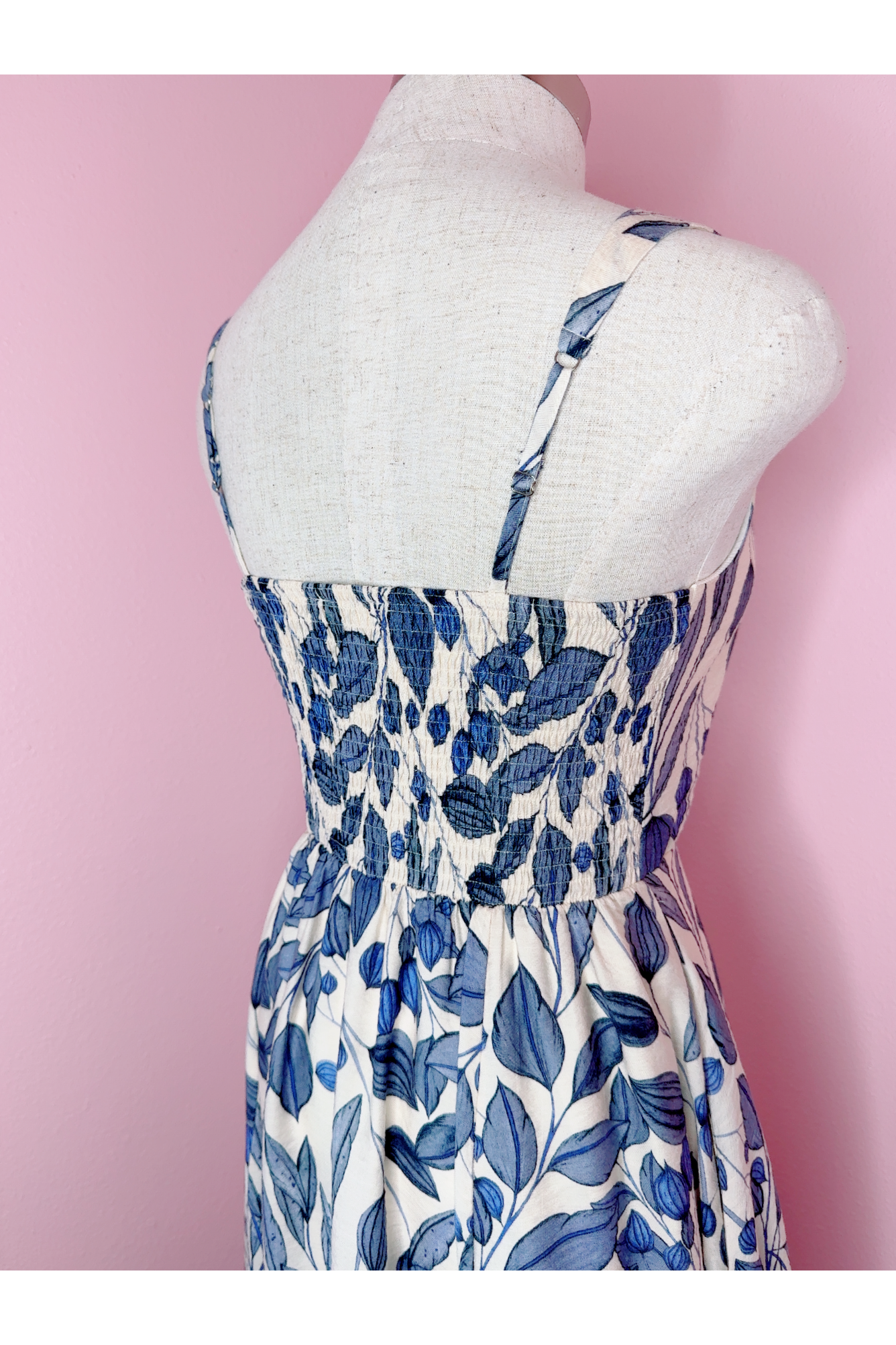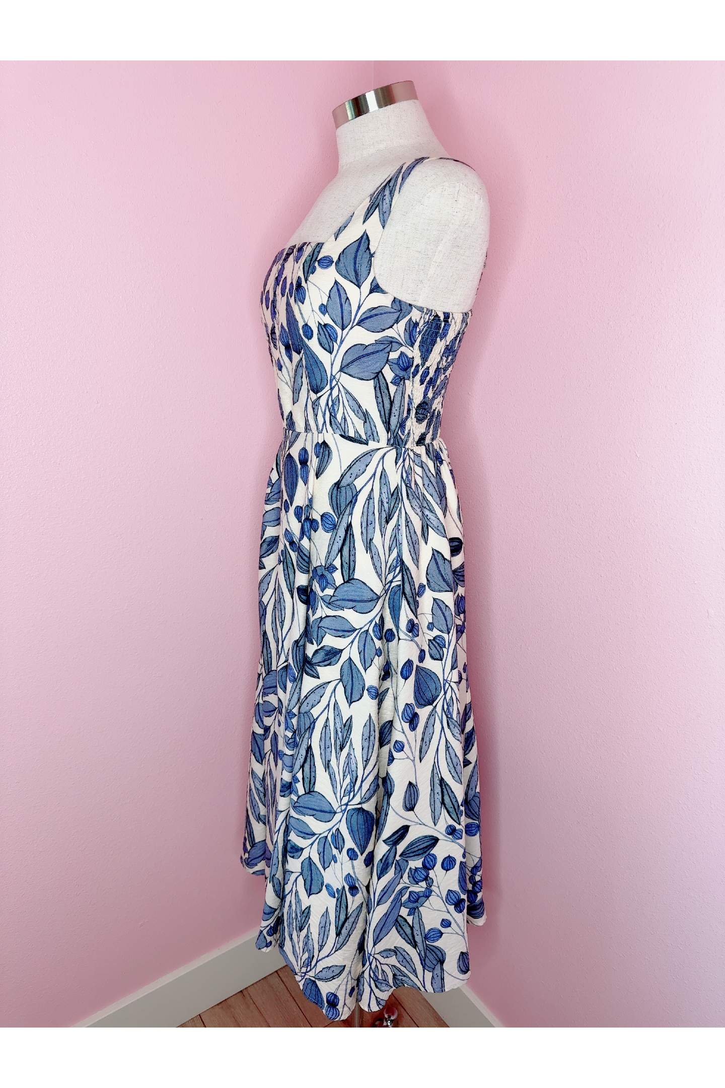 Vintage Inspired Navy Leaf Smocked Back Dress