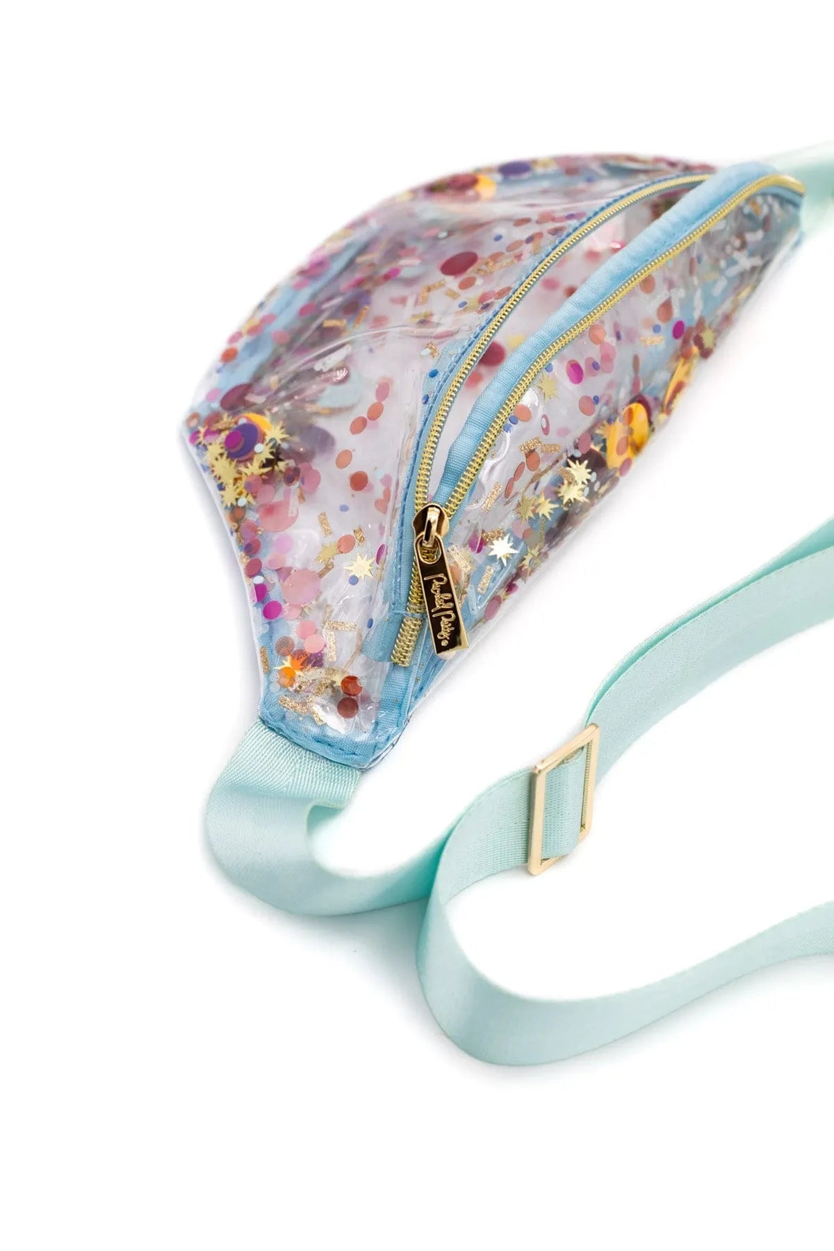 Filled with colorful celebrate everyday confetti and with luxe gold hardware attachments too make this the ideal crossbody bag for traveling or every day use.